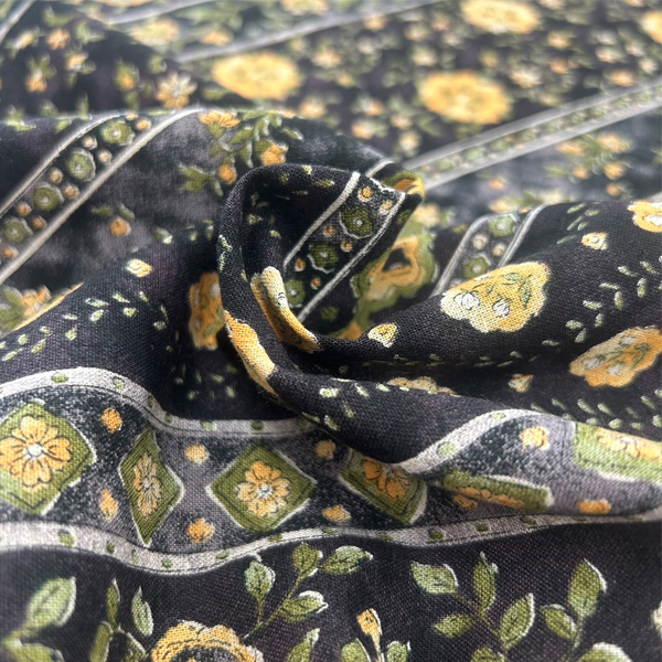 生地 SWANY Produce Saha by maruco partsコットンリネンシーチングプリント HSK794-Eブラック