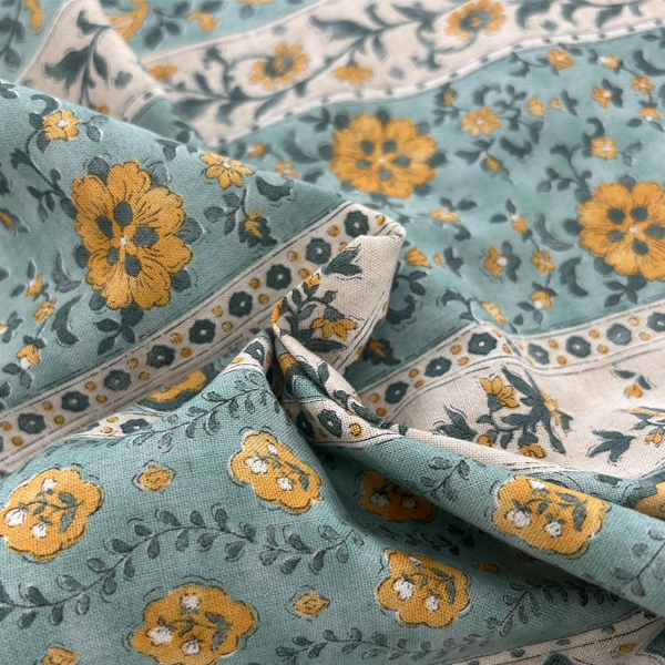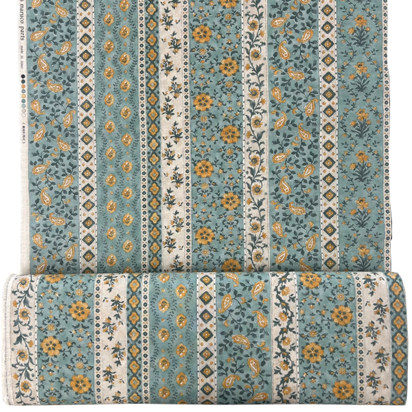 生地 SWANY Produce Saha by maruco partsコットンリネンシーチングプリント HSK794-Cフォレストグリーン(グリーン×黄色花)