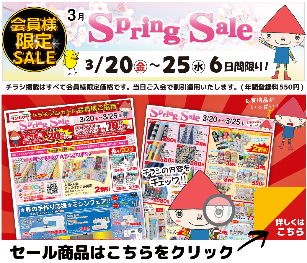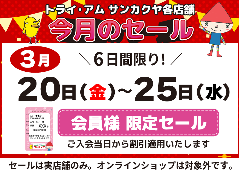 【会員様限定】3/20~ サンカクヤお買得セールのお知らせ
