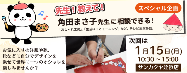 全国で活躍されているファブリックステンシル作家角田まさ子先生に直接相談できる!スペシャル企画!