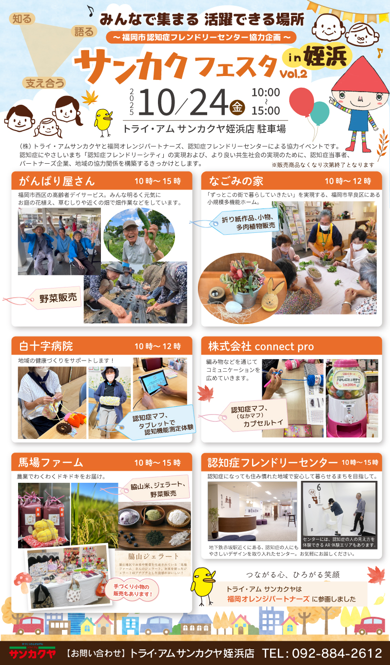 サンカクヤと福岡オレンジパートナーズ、認知症フレンドリーセンターによる協力イベントです。