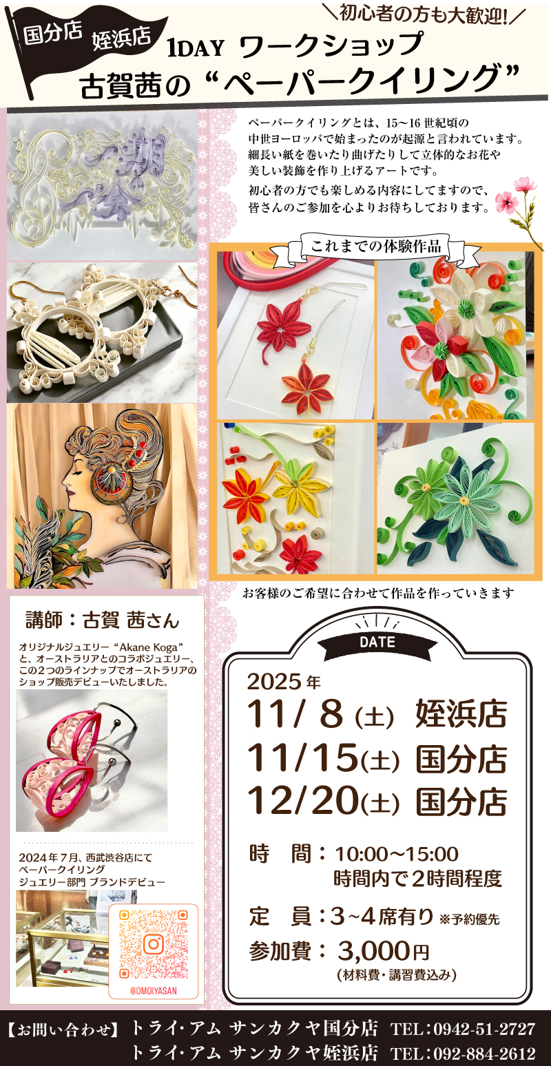 ご予約・お問い合わせ:0942-51-2727(トライ・アム サンカクヤ 国分店)
