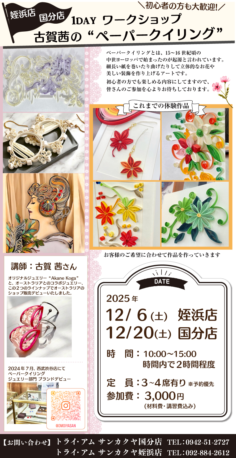 ご予約・お問い合わせ:0942-51-2727(トライ・アム サンカクヤ 国分店)
