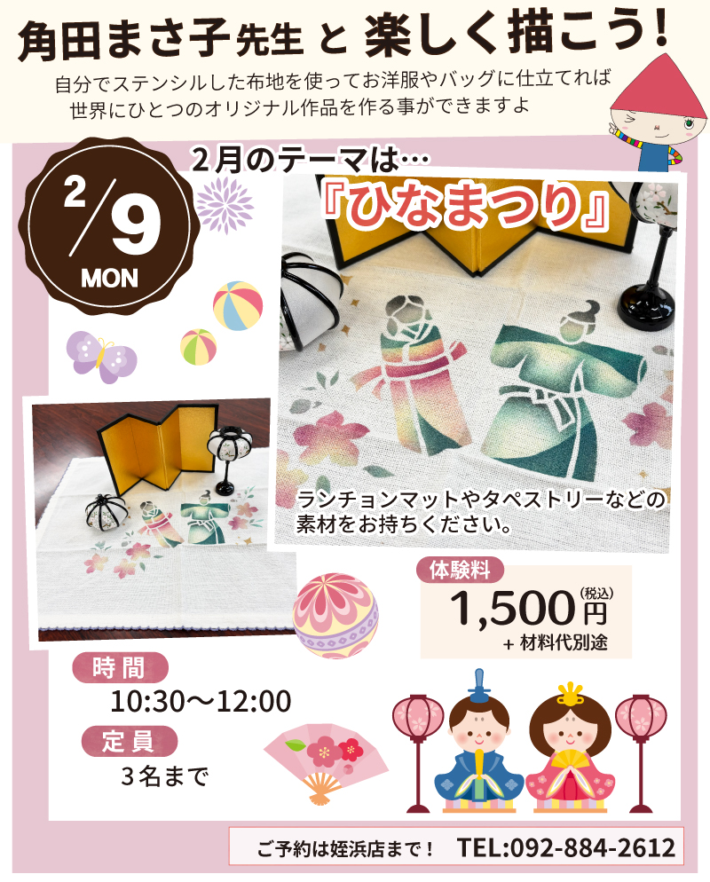 全国で活躍されているファブリックステンシル作家角田まさ子先生に直接相談できる!スペシャル企画!