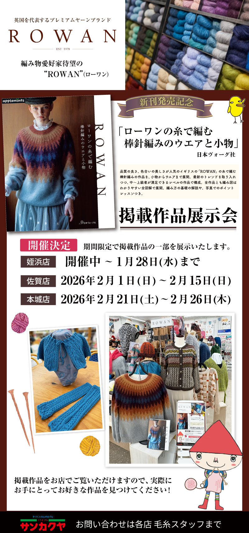 品質の良さ、色合いの美しさが人気の「ROWAN」の糸で編む棒針編みの作品が載った新刊本発売記念。