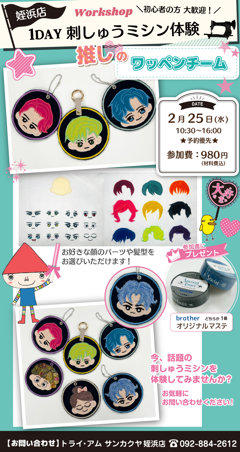 サンカクヤ姪浜店にて、1DAY 刺しゅうミシン体験を開催!