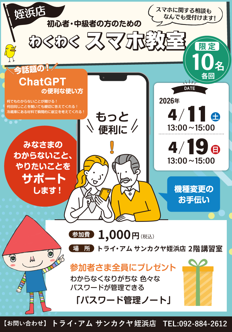 好評開催中!サンカクヤ姪浜店で初心者・中級者のための「わくわくスマホ教室」