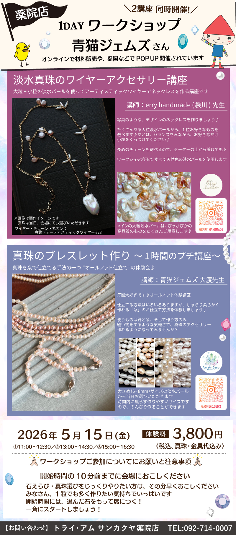 今回は「erry handmade先生」&「青猫ジェムズ 大渡先生」の2講座同時開催です!