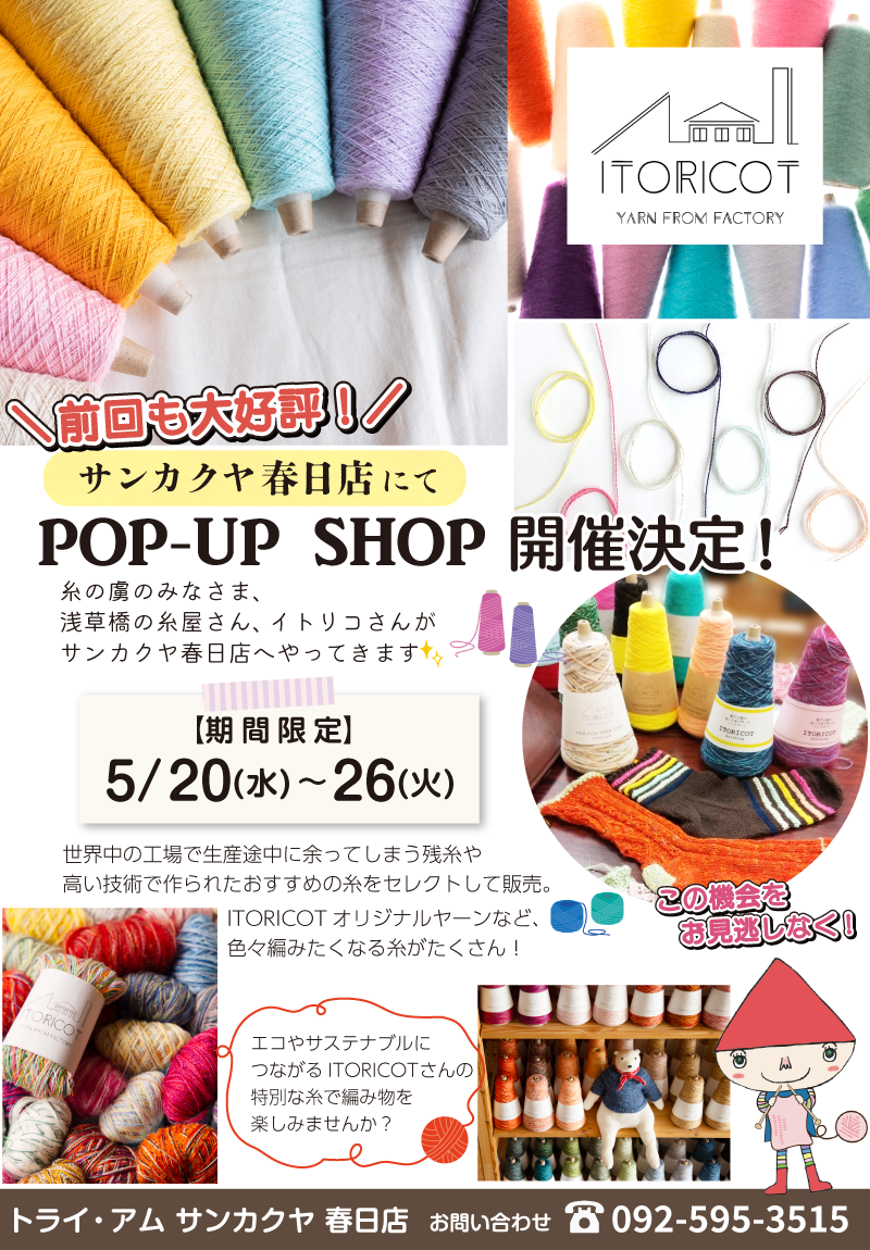浅草橋にある、手芸・手編みに使える工業糸・毛糸のショップ「ITORICOT(イトリコ)」さんのポップアップショップ。